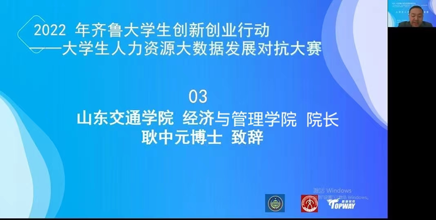 山东交通学院经济管理学院院长耿中元博士代表承办校进行致辞,他首先对各参赛院校老师、学生表示了欢迎,希望各院校通过参与本次大赛,能够提升大学生人力资源技能实践、人力资源管理实践能力,培养团队精神,培养新型数字化人力资源从业者,促进院校教学实践改革,完善课程体系。最后希望通过本次大赛达到相互学习、增进交流、共同提高的目的。